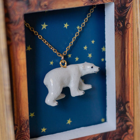 From the top of the globe comes the Camp Hollow Arctic collection of porcelain animal figurines and jewelry. Although these tiny creatures come from one of the coldest climates known to man, they will warm your heart with joy and delight. Crafted with incomparable detail, we hand paint each of our animal necklaces, rings, cake toppers, and figurines by hand, bringing them to life in full-spectrum color. Can you imagine the joy of wearing – or giving as a gift – a unique jellyfish or tiny penguin necklace? You could choose a friendly polar bear or, for the fantasy fan, a delightfully “Neat Narwhal” necklace. Each item in this collection is created using strong and durable stardust porcelain, an environmentally friendly material that will last for generations to come. We carefully pack your selection in its own gift box and ship it to you at no cost (within the U.S.).