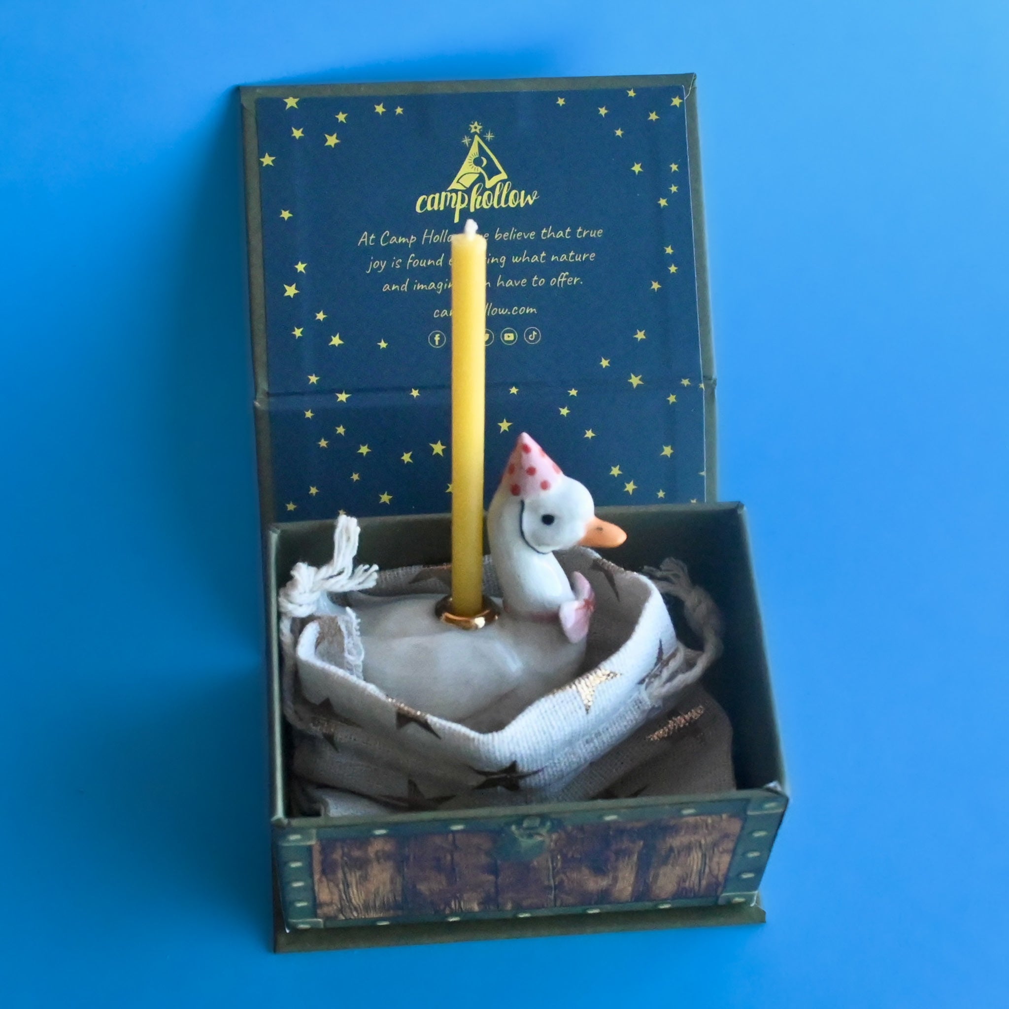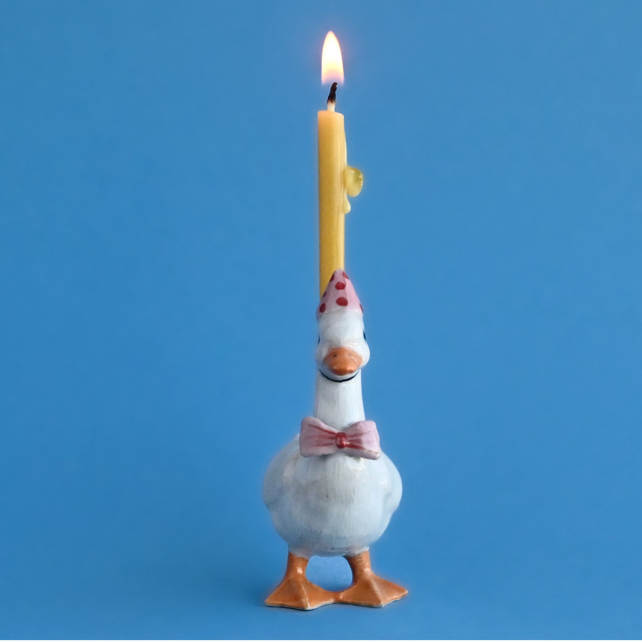 Playfully designed and cheerful in spirit, the Goose Cake Topper is a surefire way to put a smile on anyone's face. When the candle is lit and the warm glow illuminates the figurine's porcelain features, you'll feel transported to a warm and inviting atmosphere where birthday wishes always come true.