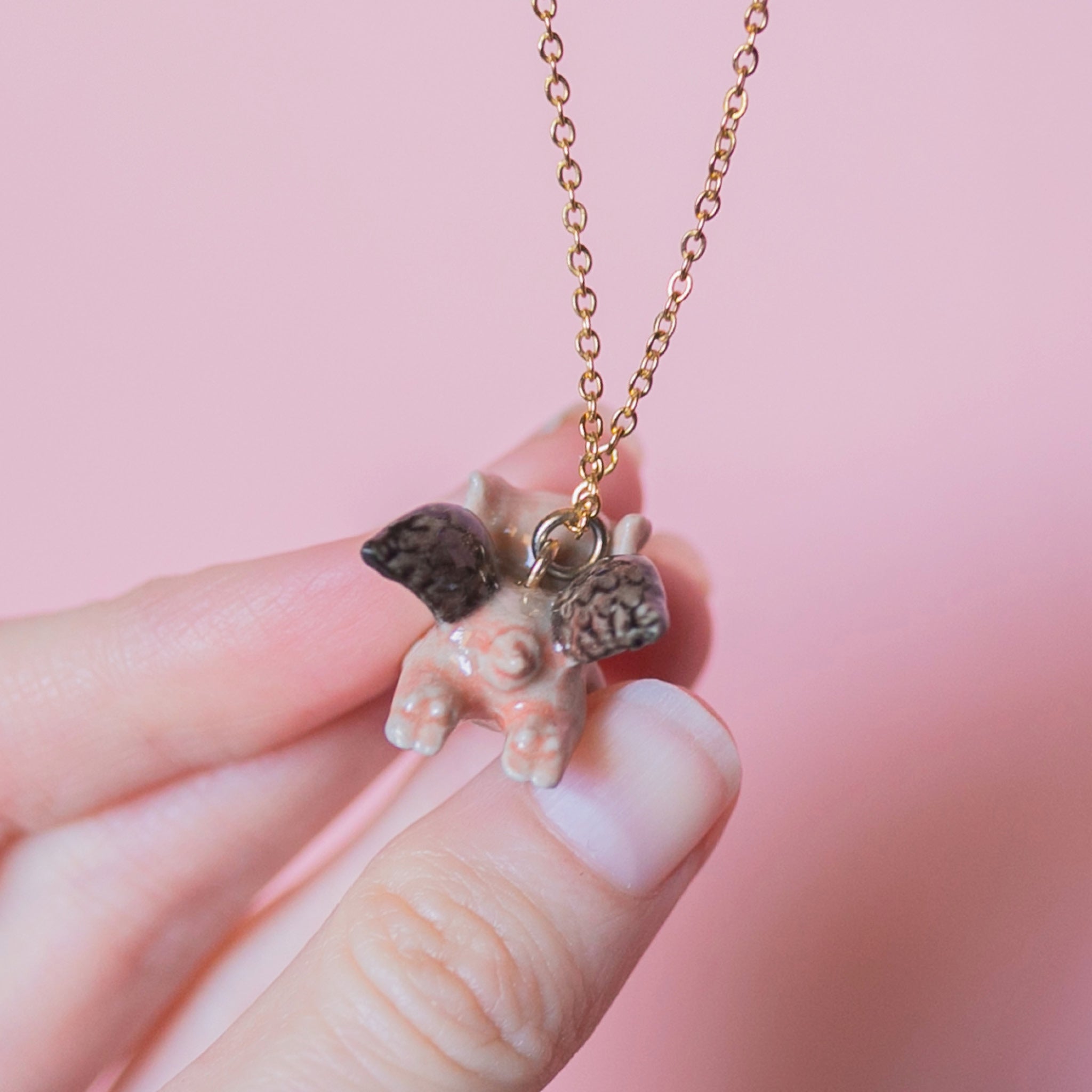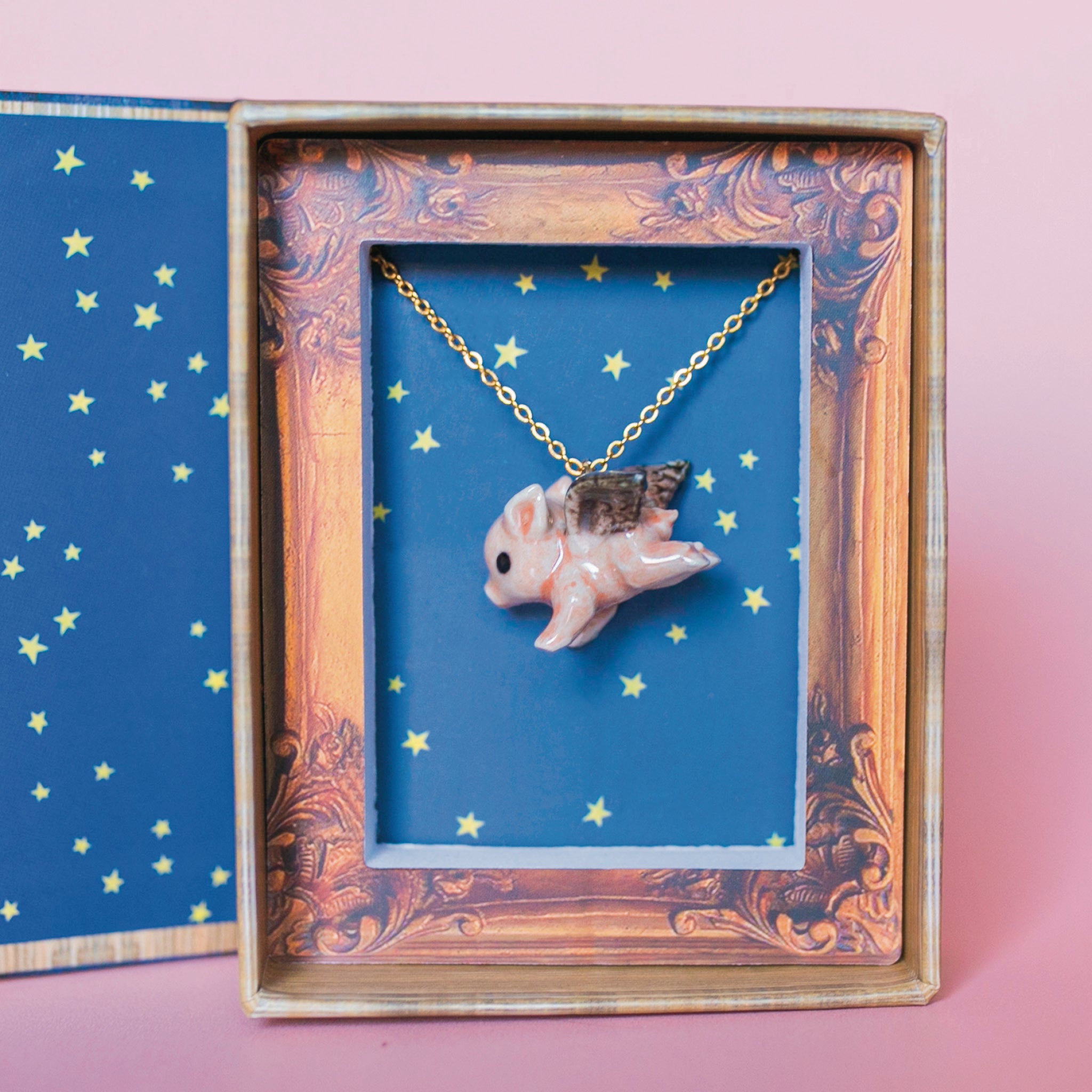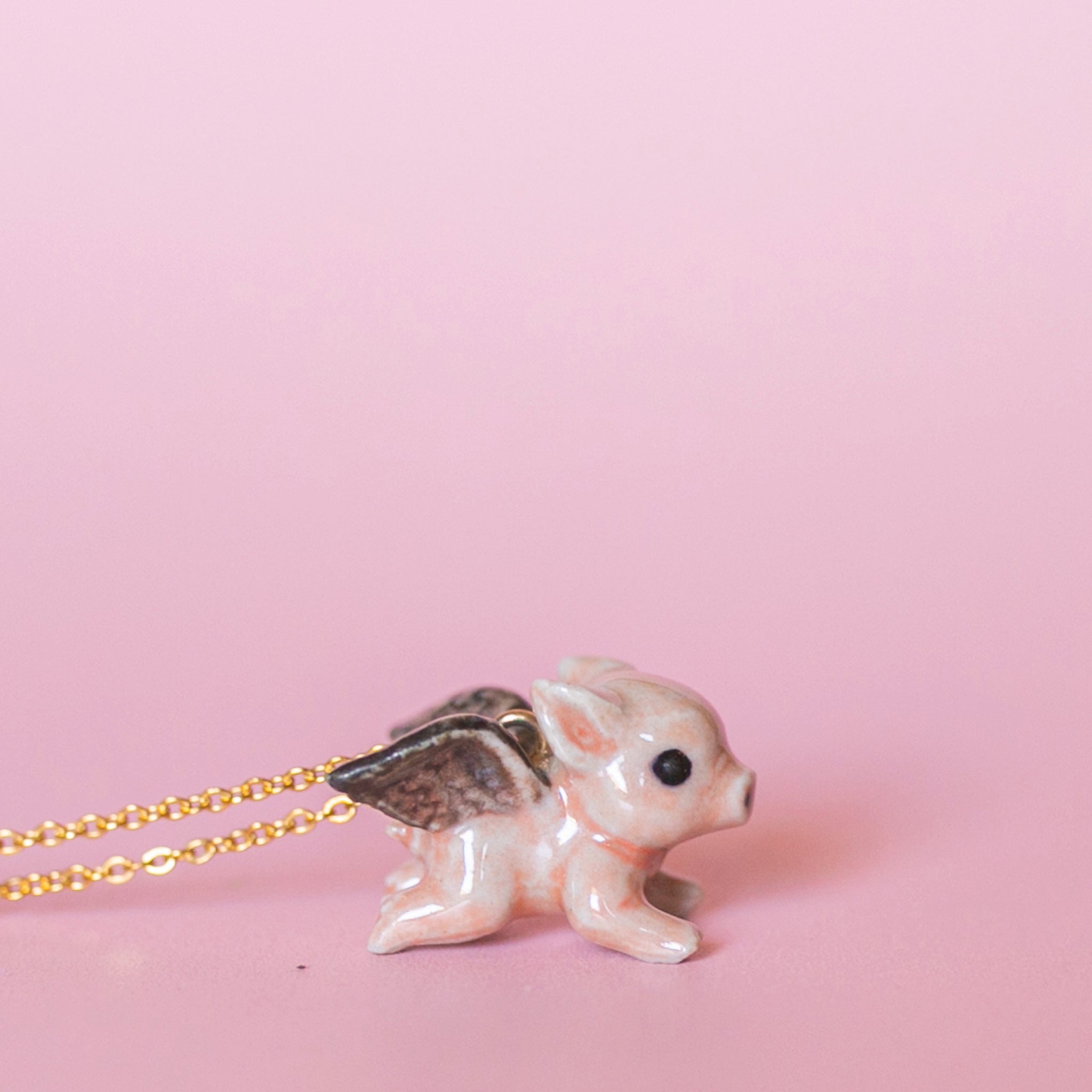 đˇ Finding a piece of jewelry thatâs incredibly cute and delicate, thoughtfully designed and artfully made, and reminds you that magic is real and nothing is impossible when you wear it? When pigs fly! Our hand-painted porcelain Flying Pig Necklace is a testament to all things weird and wonderful, and asserts that you can soar through the clouds even if youâre told you belong on the ground. The perfect piece for the head-in-the-clouds-crowd.