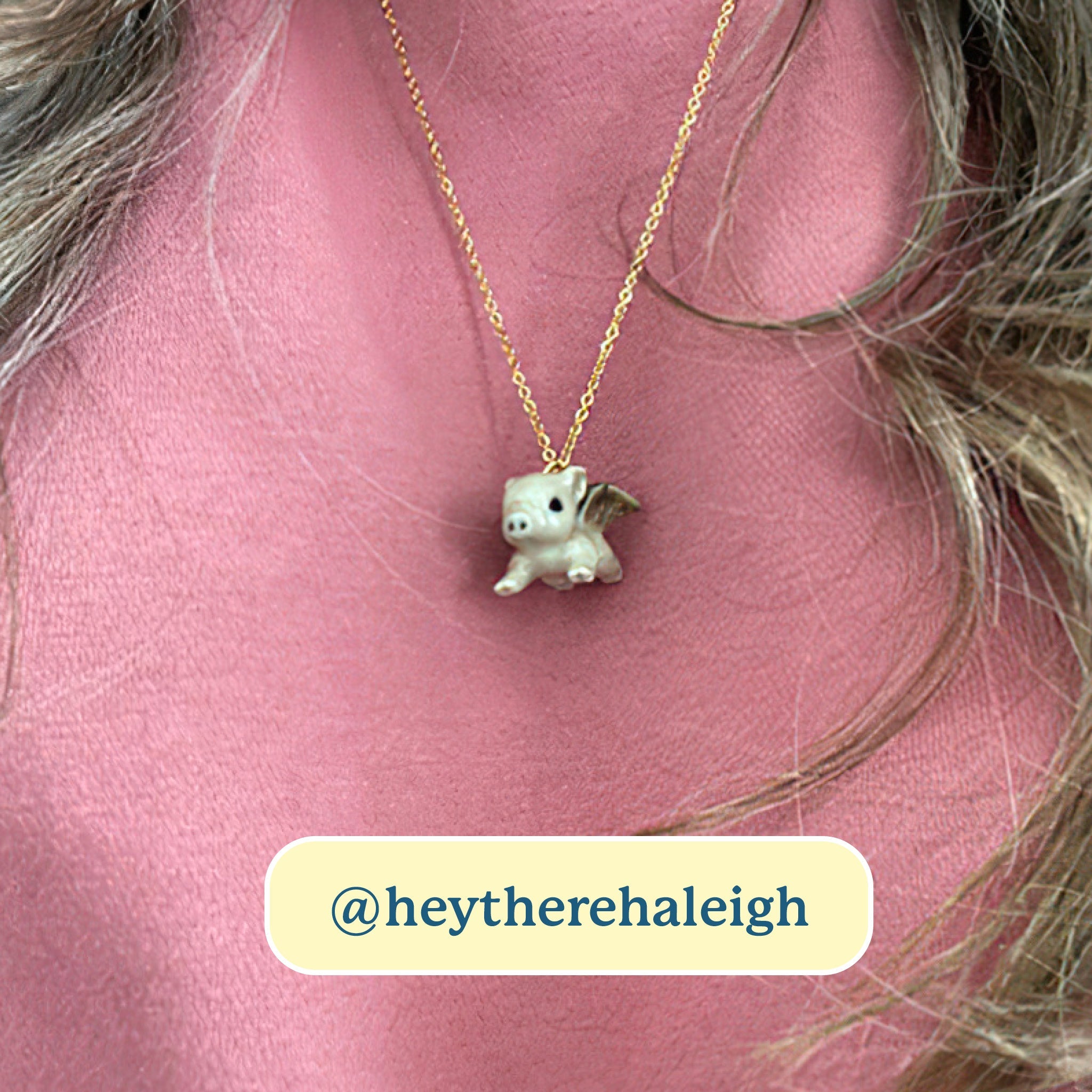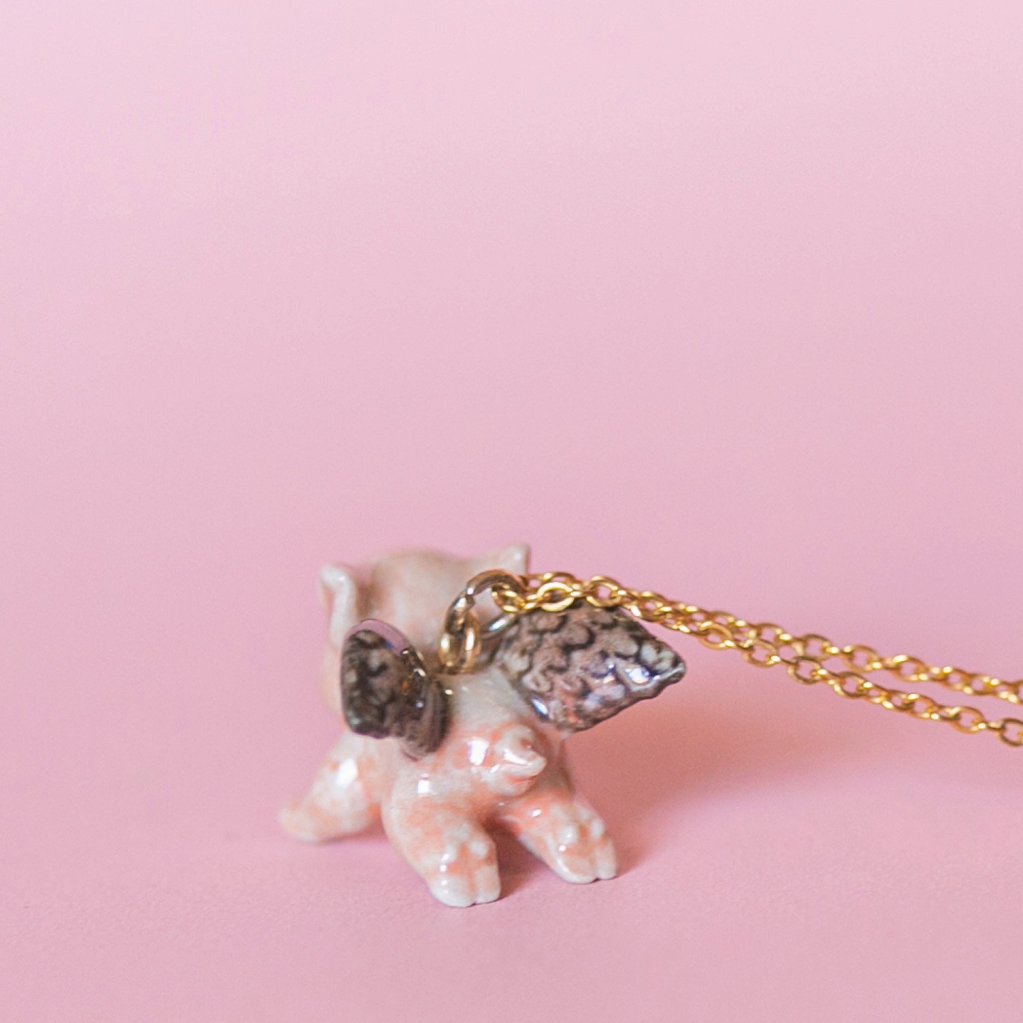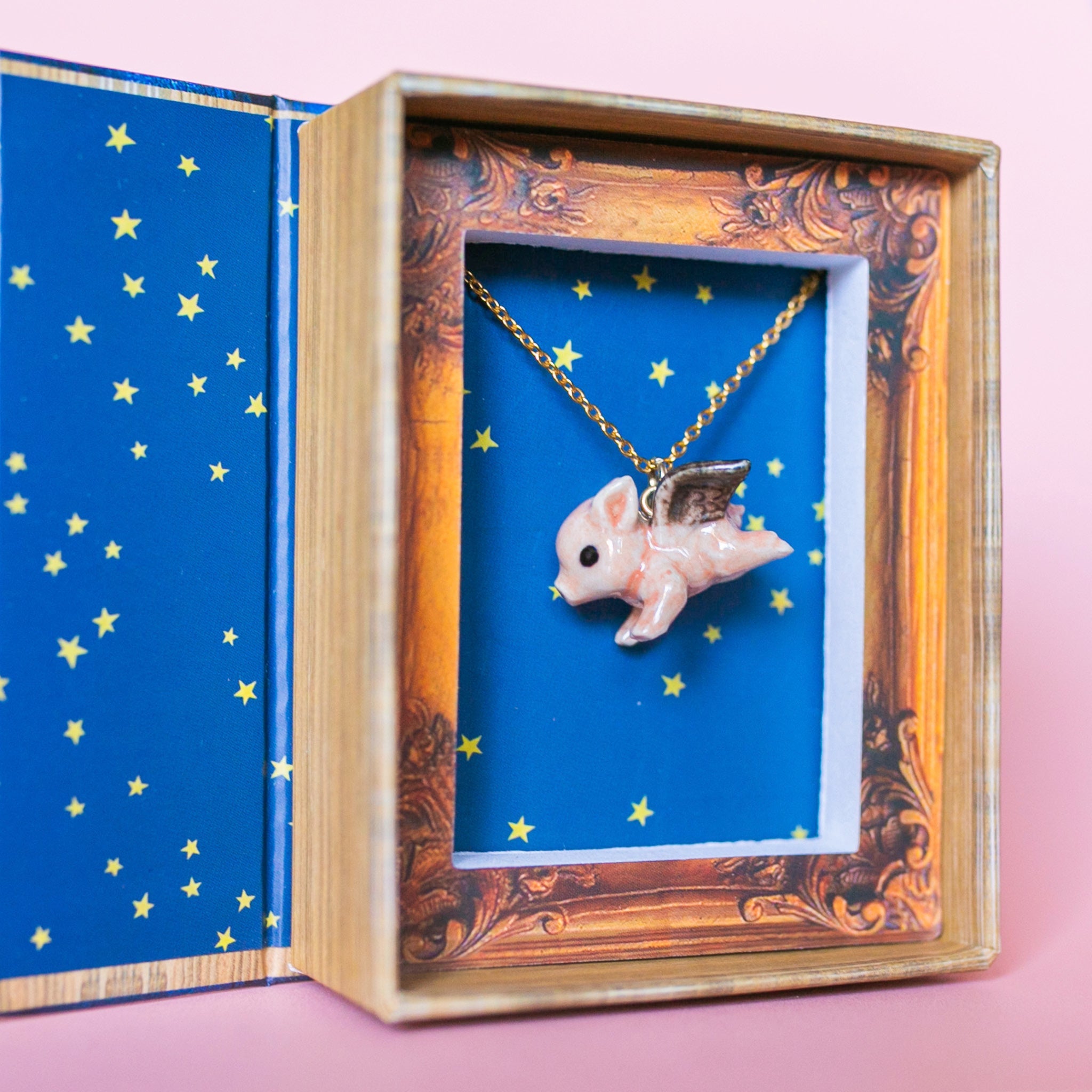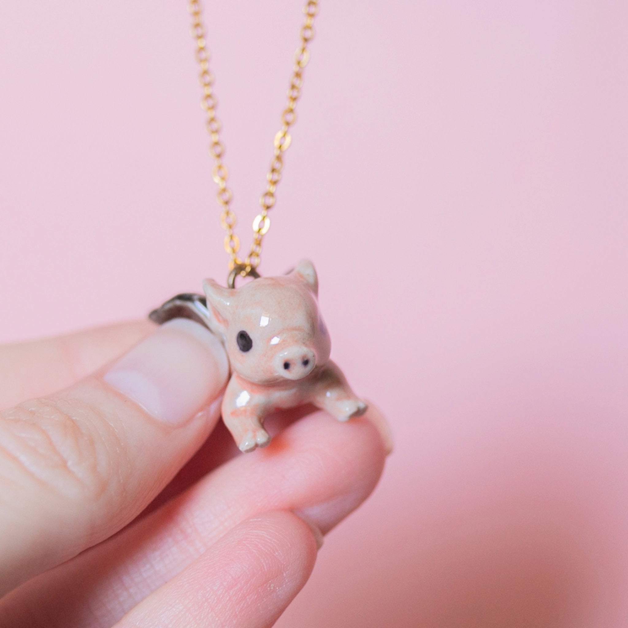 đˇ Finding a piece of jewelry thatâs incredibly cute and delicate, thoughtfully designed and artfully made, and reminds you that magic is real and nothing is impossible when you wear it? When pigs fly! Our hand-painted porcelain Flying Pig Necklace is a testament to all things weird and wonderful, and asserts that you can soar through the clouds even if youâre told you belong on the ground. The perfect piece for the head-in-the-clouds-crowd.