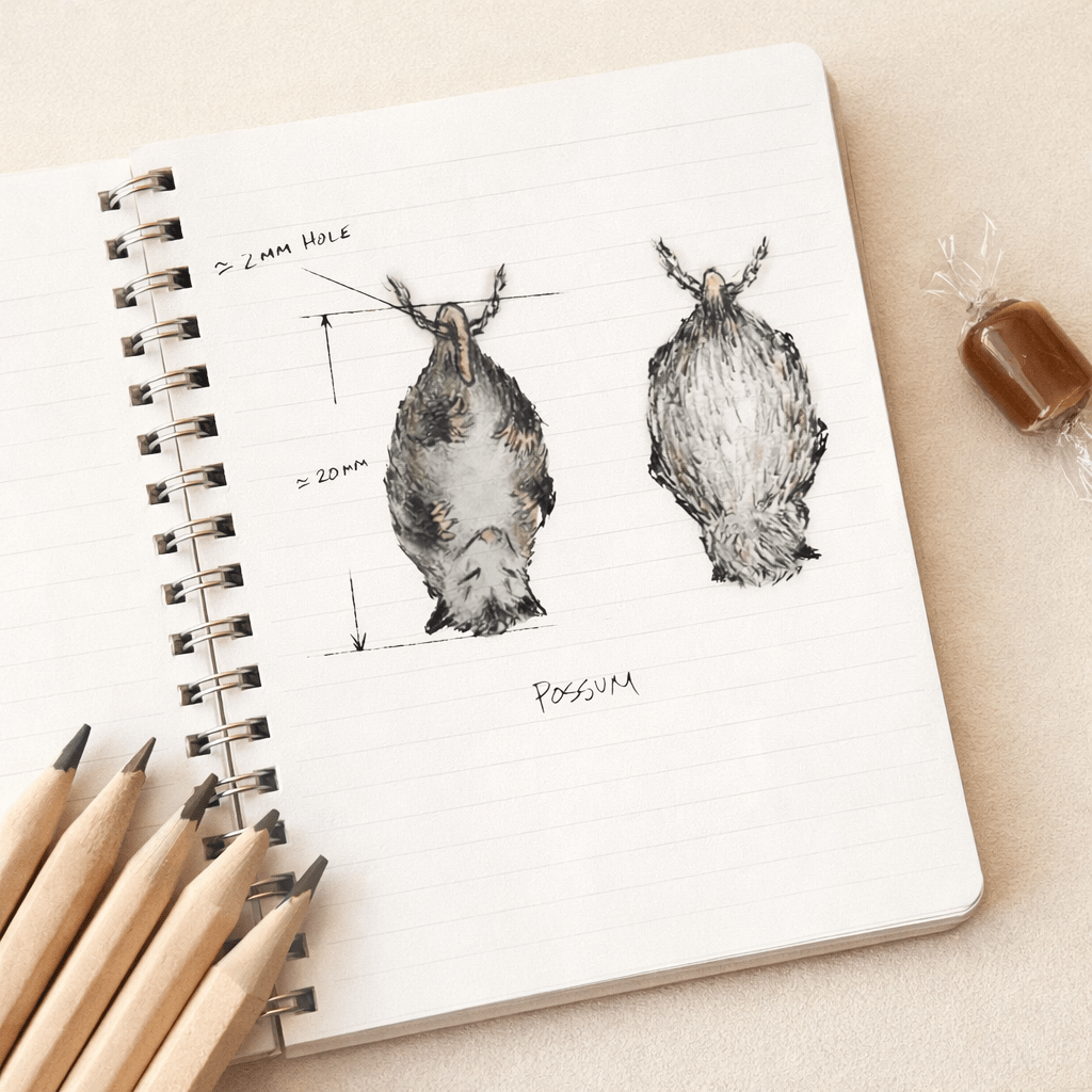 Our Possum Necklace is a sculptural expression of wit and refinement, transforming an nature inspired silhouette into an elevated design. Crafted from fine porcelain and suspended in an inverted pose, the piece balances playfulness with precision, resulting in a statement that feels both modern and enduring.