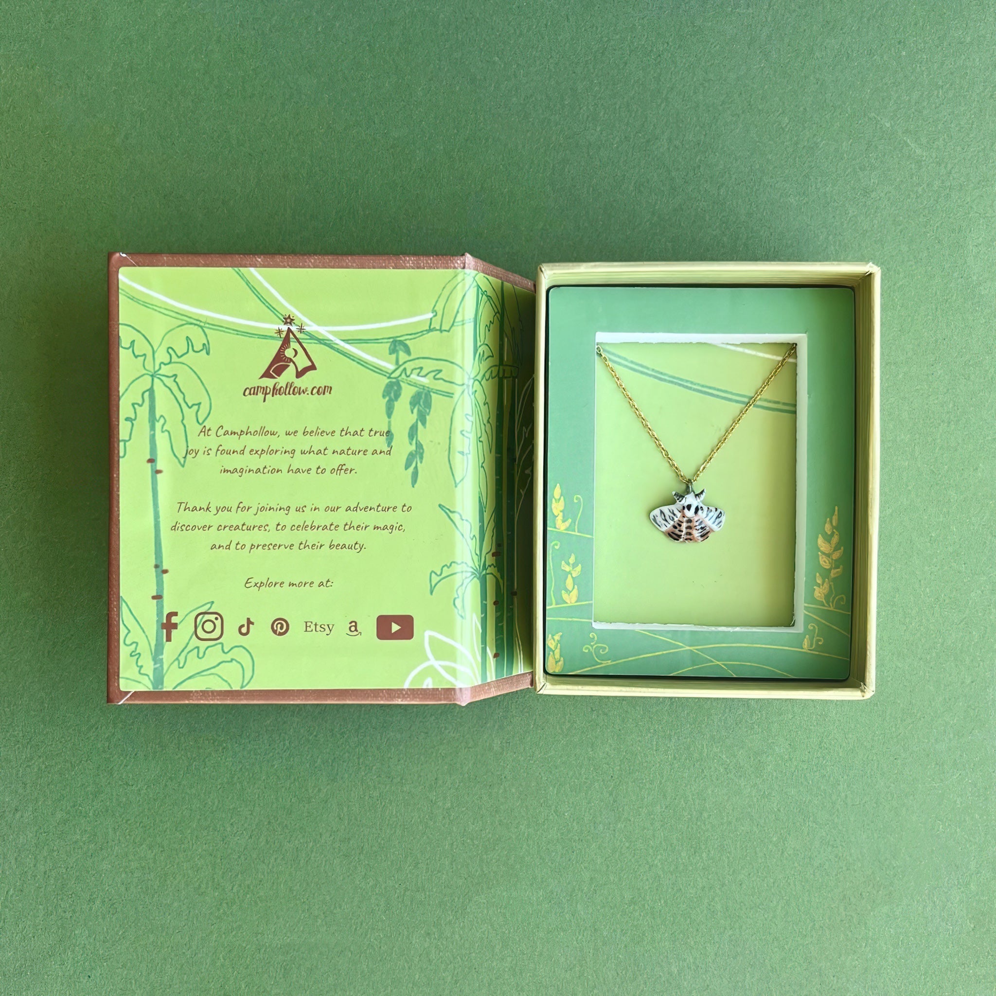 Immerse yourself in the mystique of our Twilight Veil Moth Necklace, a tribute to nature's endless cycle of change and mystery. Inspired by a unique species from the lush jungles of CampHollow, this necklace is a gentle nudge towards embracing personal transformations with grace.