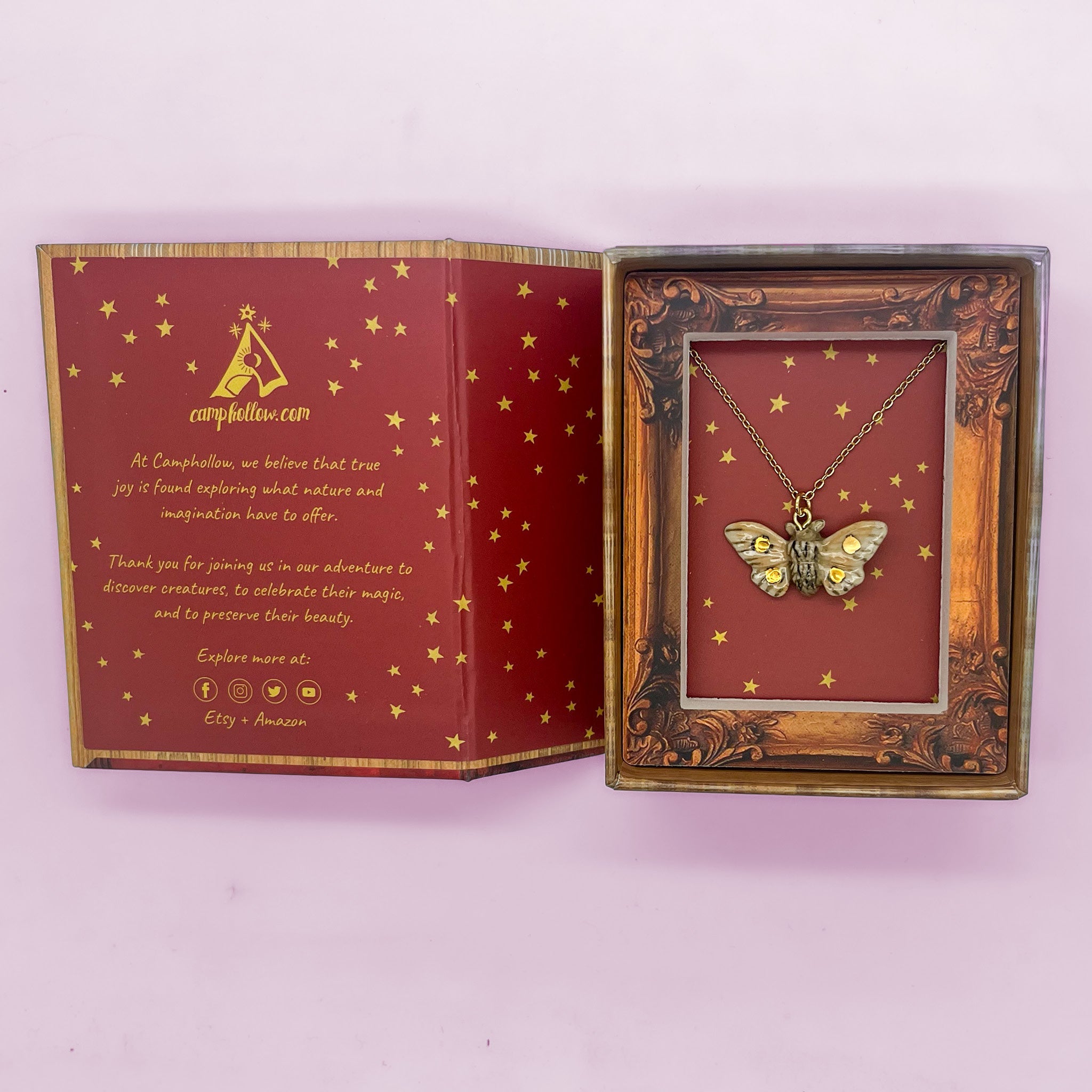 🦋 Nurture your sunny spirit with Camp Hollow’s Solar Moth necklace. Rendered in porcelain and hand-painted in earthy tones with shining gold accents, this precious little piece captures the beauty and incandescence of our favorite big star.