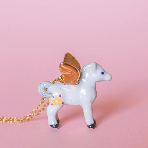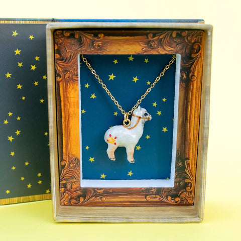 Our cute necklace collection features a wide variety of creatures, from sea to space, myth to mountain range, and farmyard to fairytale. Each cute pendants necklace is hand-painted with intricate detail and strung on a delicate 24k gold plated steel chain. 🎨🐾