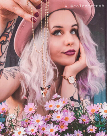 🦎The wild axolotl could previously only be found in the ancient networks of lakes and canals in Xochimilco, Mexico, but have recently been spotted swimming around Camp Hollow! Our long-awaited Axolotl Necklace is here, featuring the curiously cute salamander rendered in peach-colored porcelain, hanging from a shining gold chain.