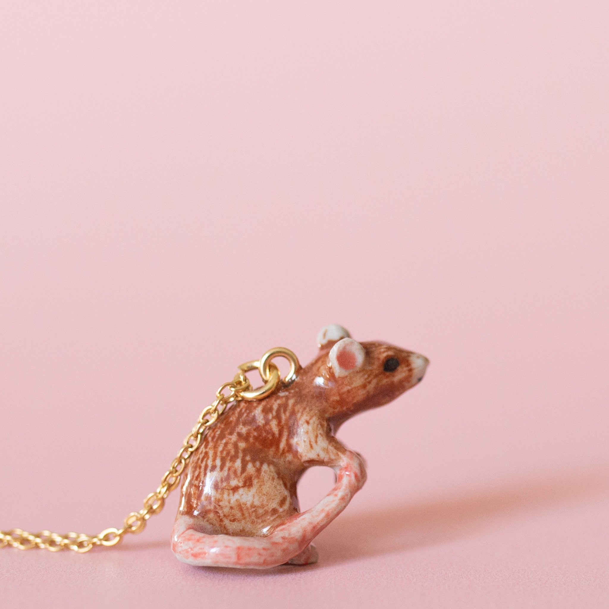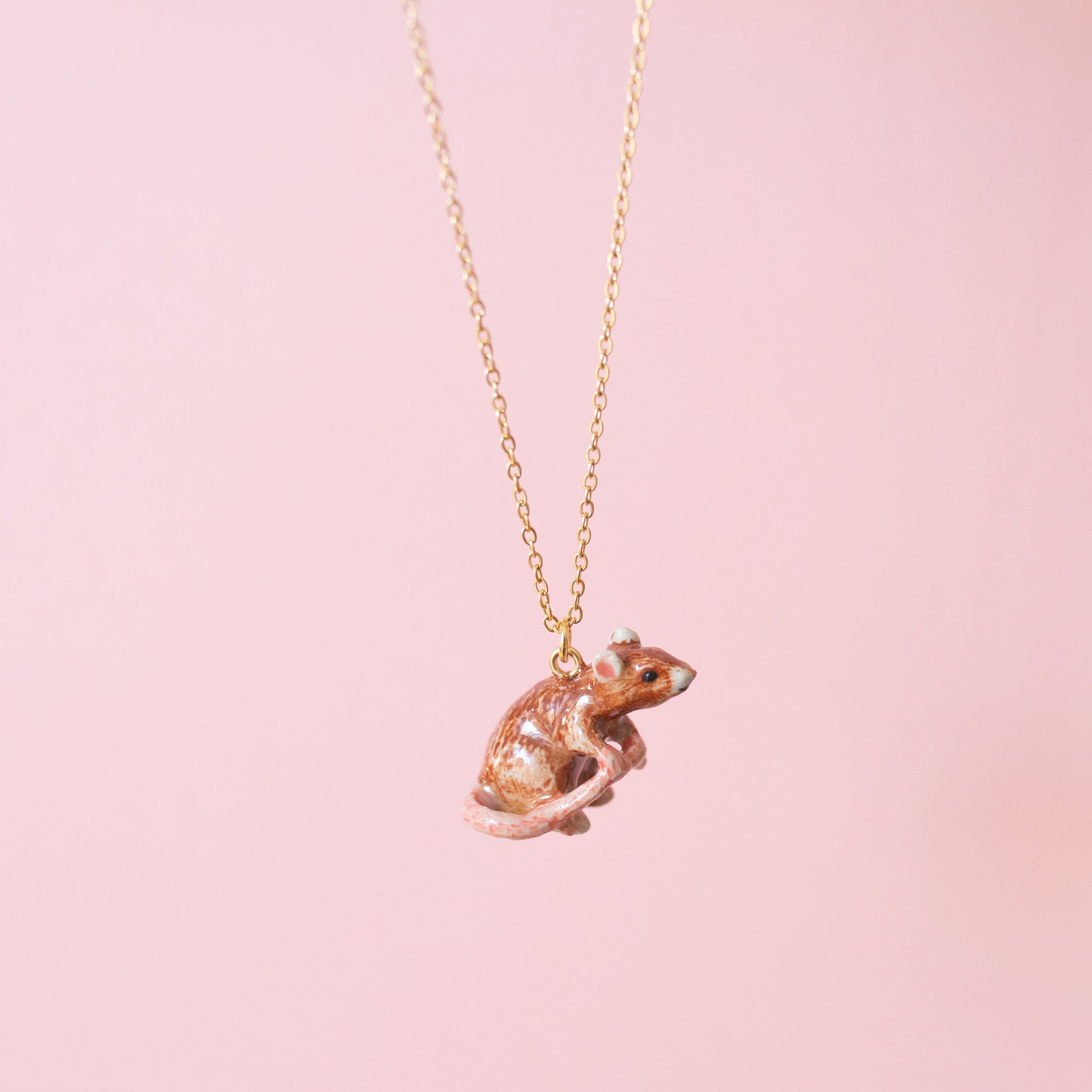It's impossible not to fall in love with this little rat! Camp Hollow's Rat Necklace boasts super sweet rodent representation, from its tiny paws down to its perfectly pink tail.