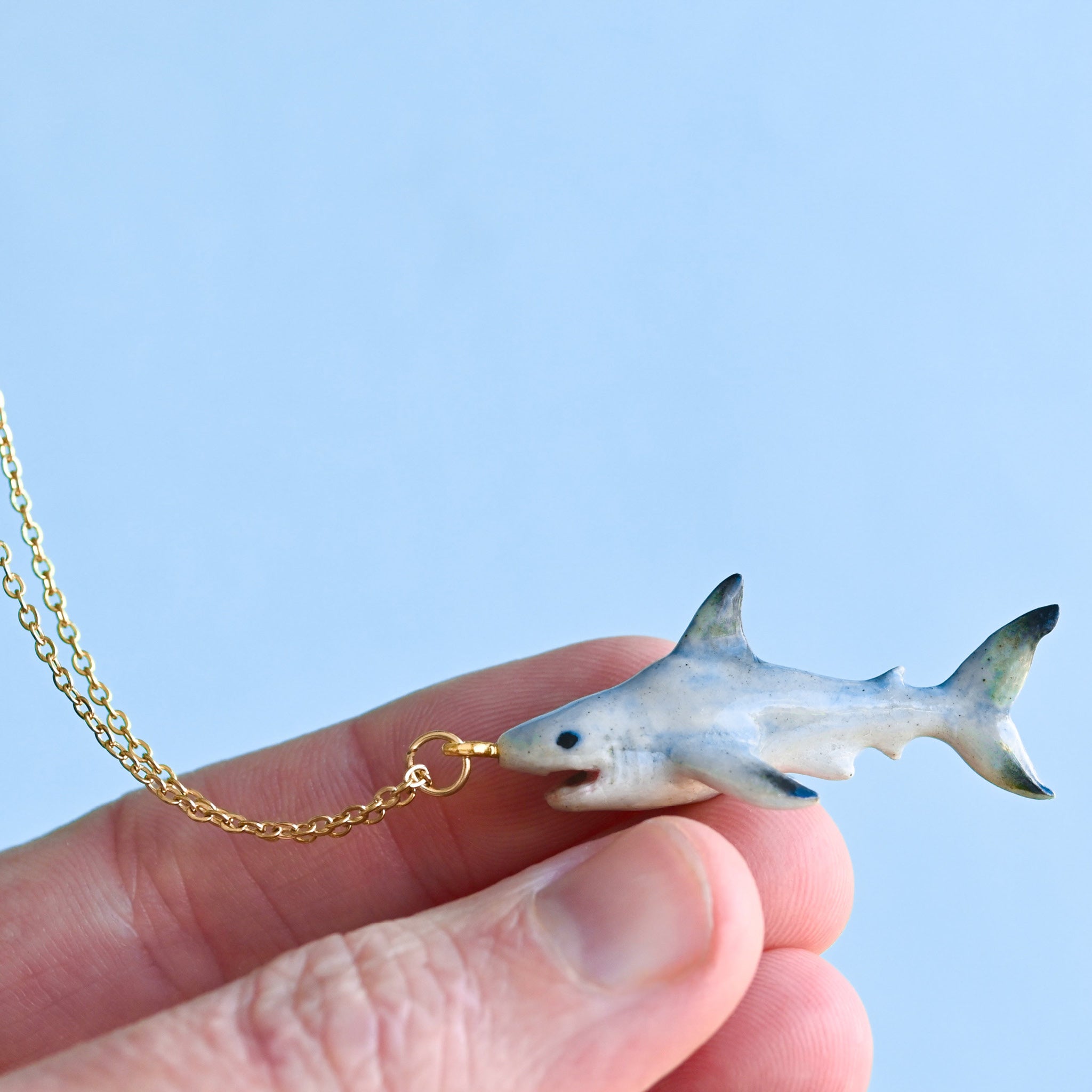 Introducing our stunning Great White Shark necklace - the perfect piece of jewelry for anyone who loves the ocean and its incredible creatures. This necklace features a beautifully crafted Great White Shark pendant, made from high-quality porcelain and designed with attention to detail. The pendant is intricately hand-painted to create a lifelike and realistic appearance, making it a standout piece of jewelry. The pendant hangs on a sleek and stylish chain, creating a striking and unique look that's sure to turn heads. Whether you're a marine biologist, ocean lover, or simply appreciate the beauty of marine life, this necklace is the perfect choice. Wear it with pride and show off your love for these amazing apex predators.